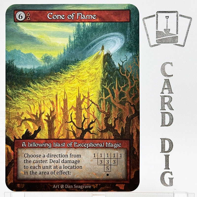 Text Box: Choose a direction from the caster. Deal damage to each unit at a location in the area of effect: (damage grid)
