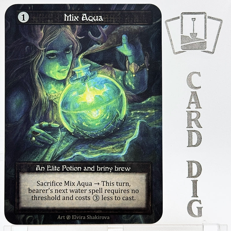 Text Box: Sacrifice Mix Aqua -> This turn, bearer's next water spell requires no threshold and costs 3 (mana) less to cast.
