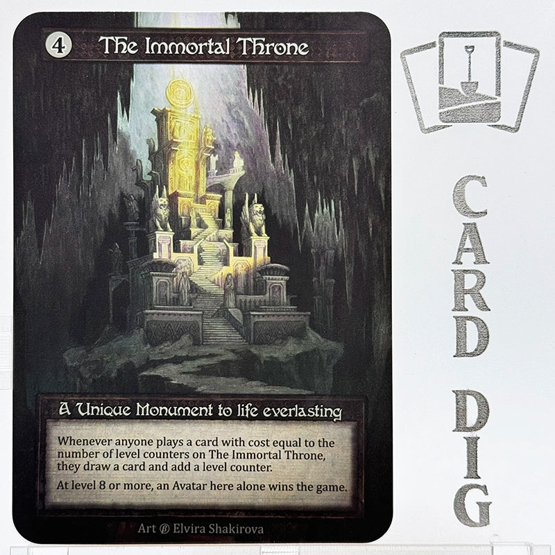 Text Box: Whenever anyone plays a card with cost equal to the number of level counters on The Immortal Throne, they draw a card and add a level counter. At level 8 or more, an Avatar here alone wins the game.