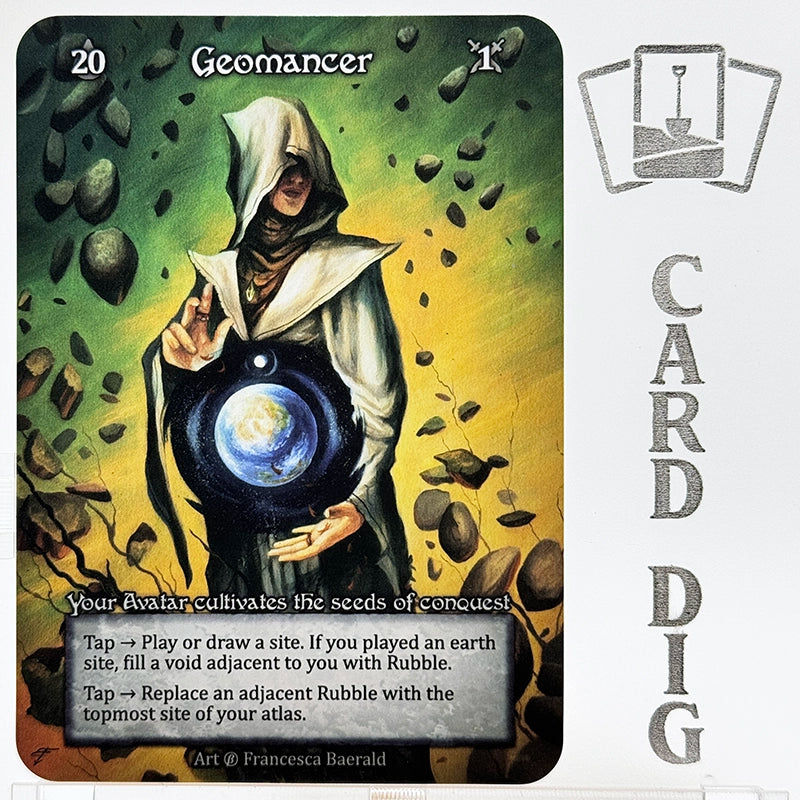 Text Box: Tap -> Play or draw a site. If you played an earth site, fill a void adjacent to you with Rubble. Tap -> Replaces an adjacent Rubble with the topmost site of your atlas.