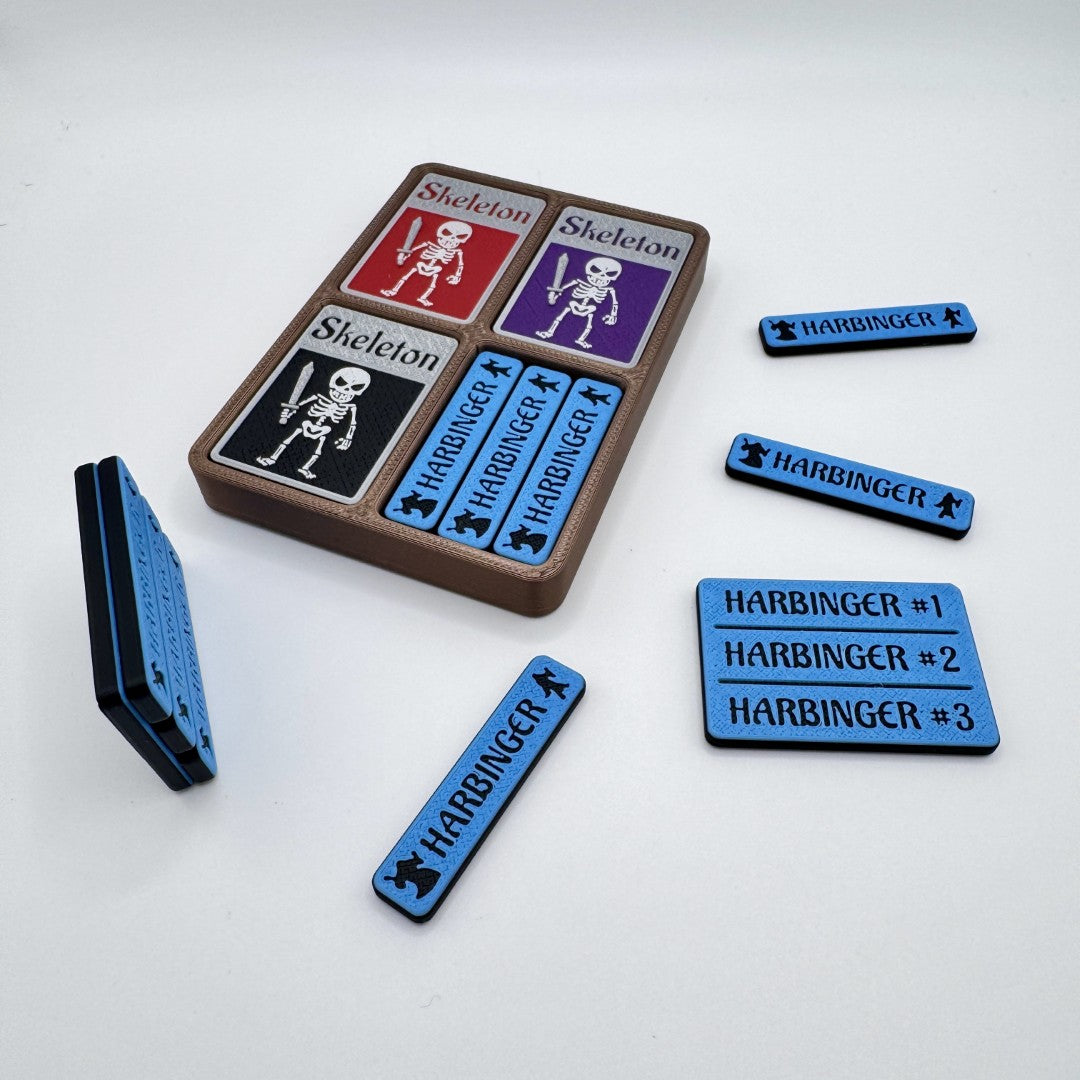 Compact and versatile, these tokens and bases fit neatly in standard deck boxes for convenient storage and transport. Each base is roughly the size of a sleeved trading card, and tokens securely snap into place for streamlined organization and easy access during gameplay. Fully interchangeable, they offer endless customization options.
