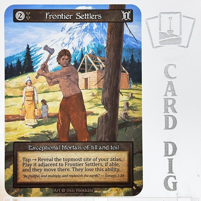 Text Box: Tap -> Reveal the topmost site of your atlas. Play it adjacent to Frontier Settlers, if able, and they move there. They lose this ability.