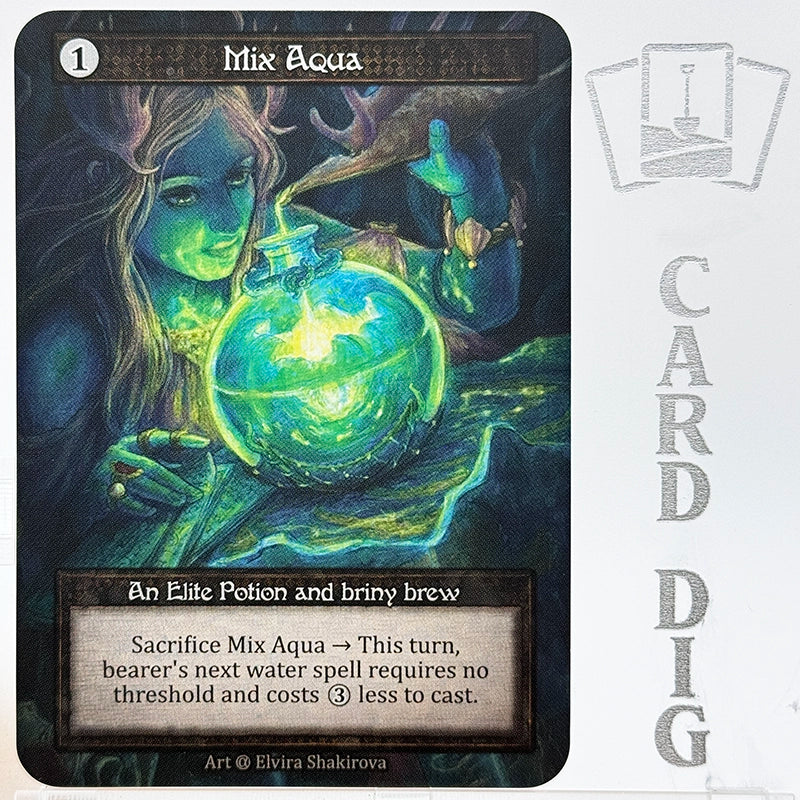 Text Box: Sacrifice Mix Aqua -> This turn, bearer's next water spell requires no threshold and costs 3 (mana) less to cast.
